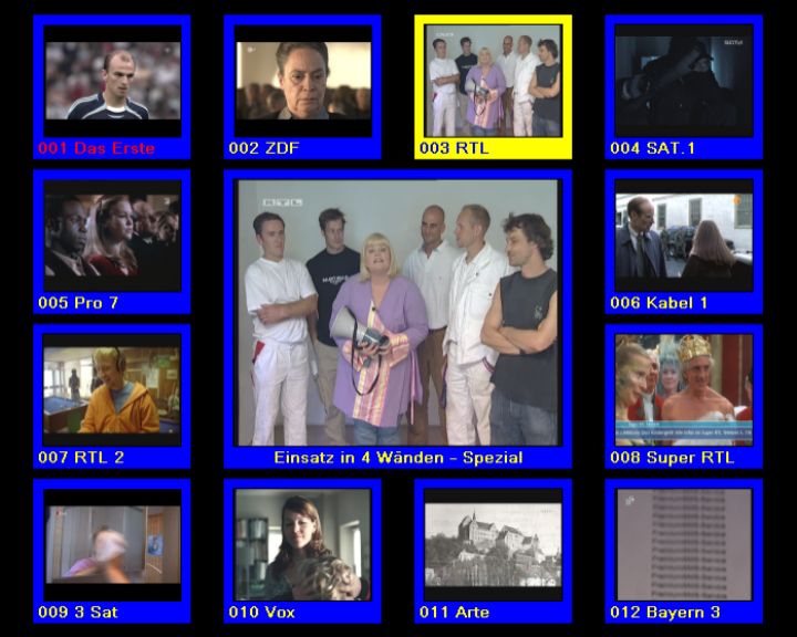 Es lassen sich 12 Sender gleichzeitig darstellen, die sich der Reihe nach alle 2 Sekunden